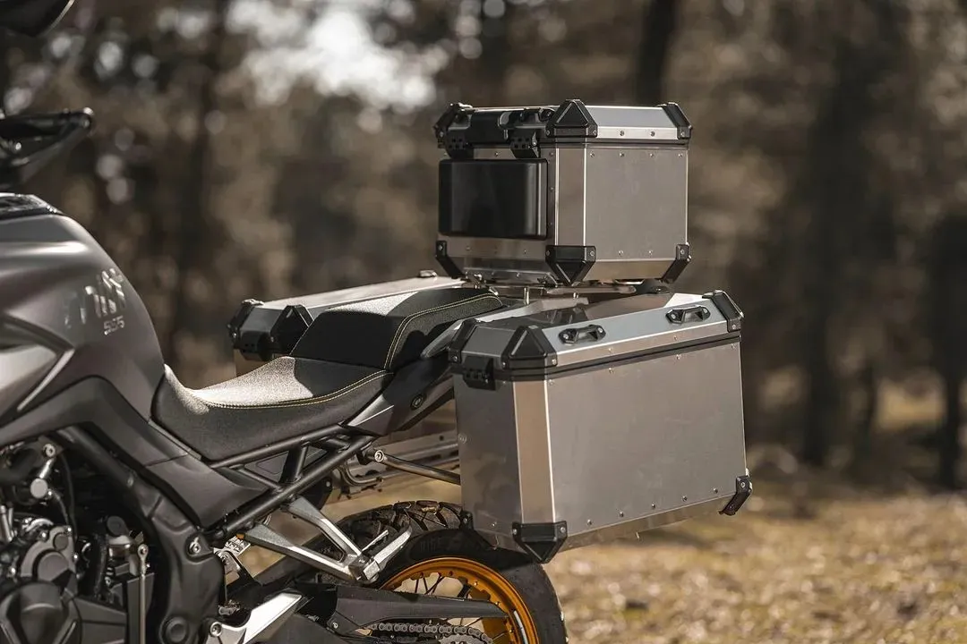 Su enfoque viajero se nota en el equipamiento de serie. Integra pantalla TFT de 7” con Mirror-Link, iluminación Full LED y una dotación práctica para el día a día y las rutas: USB tipo A, USB tipo C y toma 12V. Además, incluye caballete central y lateral, y protecciones pensadas para el uso trail.