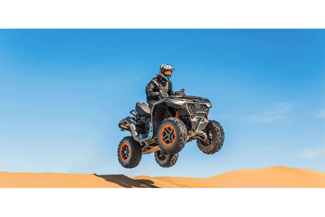 La base del rendimiento es su motor V-Twin de 4 tiempos con refrigeración líquida, que entrega aceleración contundente y empuje constante. La inyección Bosch EFI mejora el arranque, la respuesta y la estabilidad en diferentes condiciones. Además, incorpora modos de conducción para adaptar la entrega de potencia al entorno: más respuesta para diversión, y más control para trabajo y tracción.